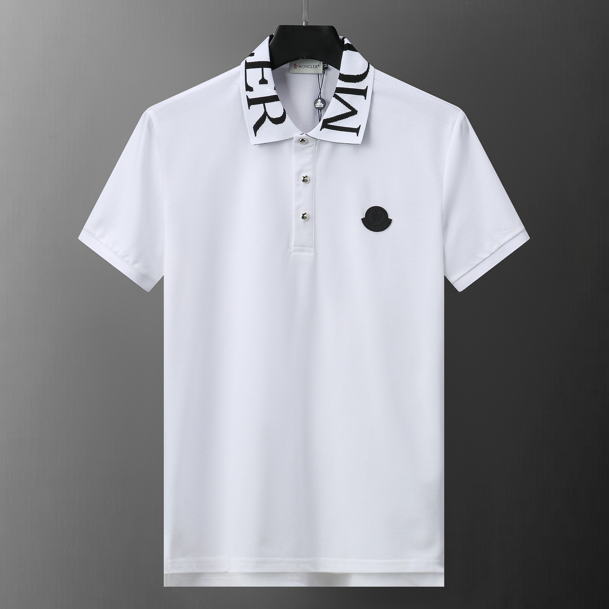 MONCLER White lapel short-sleeved POLO shirt